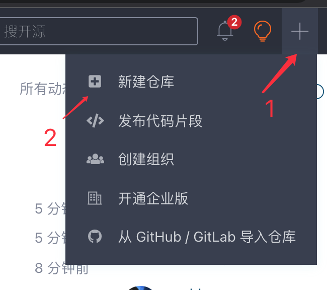 创建一个gitee仓库 2.1 点击右上角的加号 2.2 选择新建仓库   -
