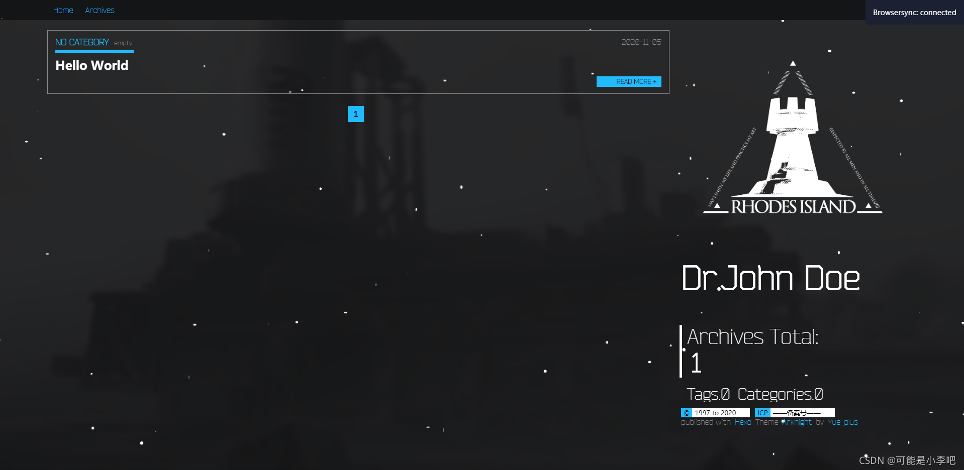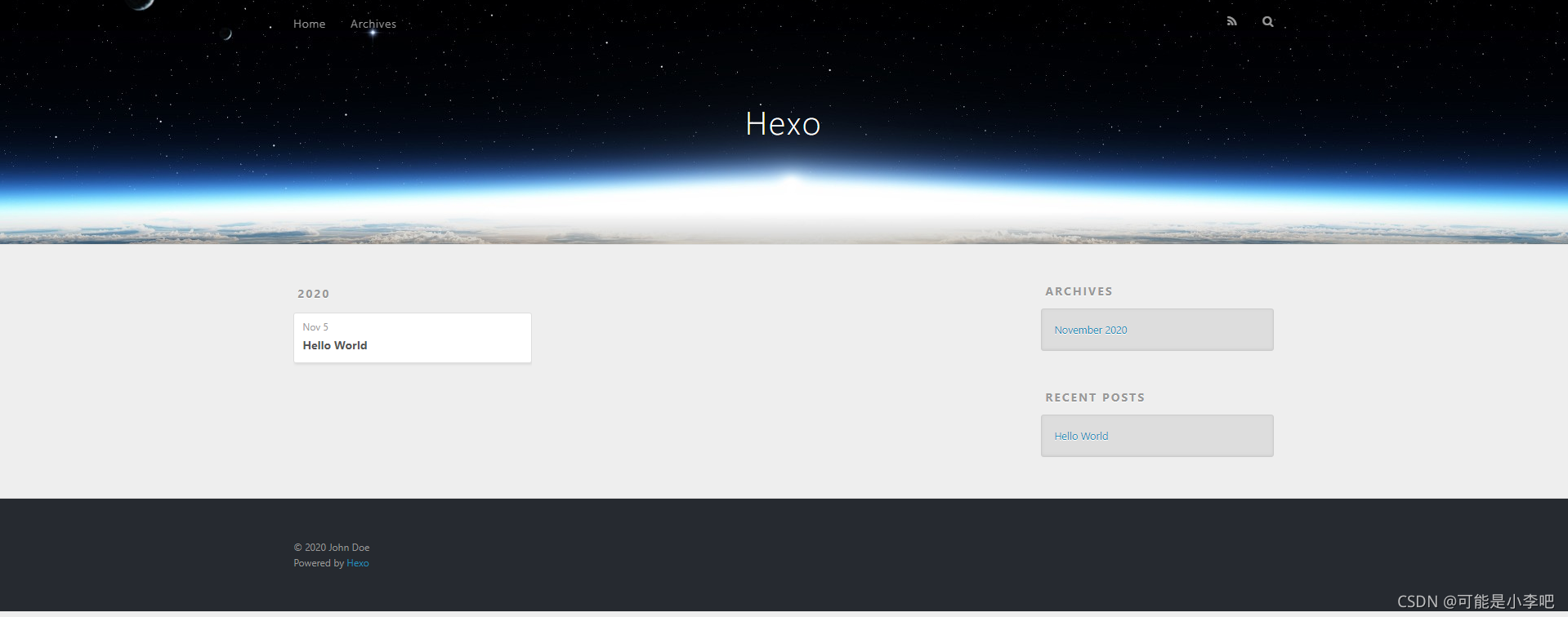 打开浏览器,输入localhost:4000 就可以看到博客的页面了。 默认是这个样式:   -