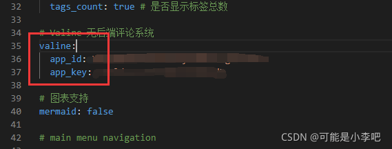 找到 valine 将刚刚赋值的AppID、AppKey粘贴进来  -