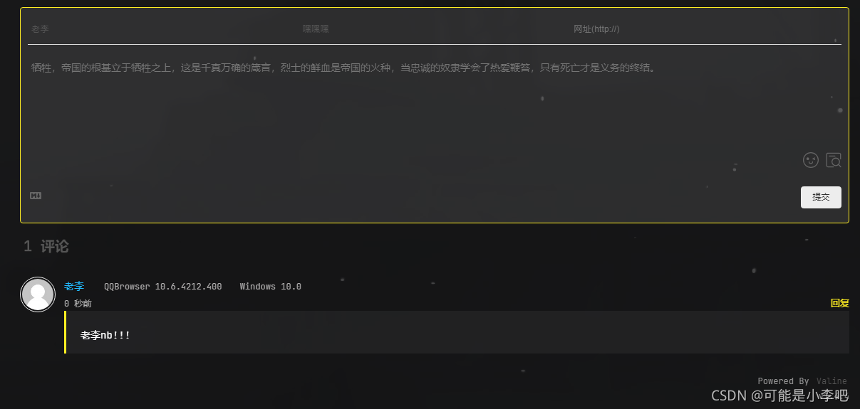 hexo支持Valine无后台评论系统。Valine是一款基于LeanCloud的评论系统,无需自建后端,即引即用。以下简述使用valine的步骤。