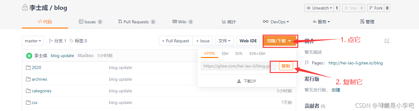 下面将通过简单的几步操作,让我们将自己的博客托管到gitee上去。