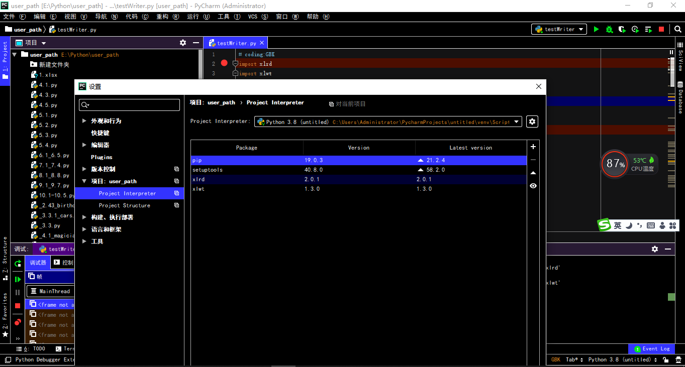 在运行时出现?pycharm 出现no module named xlrd,原因是没有引入此模块,当时就奇怪了,之前通过命令行 pip3 install xlrd?安装过这个包而且?在Geany这个工具里可以默认使用,为何在这里不行?? 研究了一下,这里主要是在?pycharm 当前工程中需要设置一下, 文件->设置?-> ? 程序里使用哪些包,在这里查一下进行设置引入即可。
