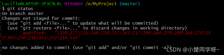 Untracked: 未跟踪, 此文件在文件夹中, 但并没有加入到git库, 不参与版本控制.?通过git add?状态变为Staged -