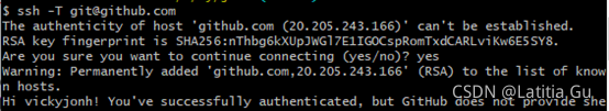 4. ?测试 ssh 链接 ssh -T git@github.com