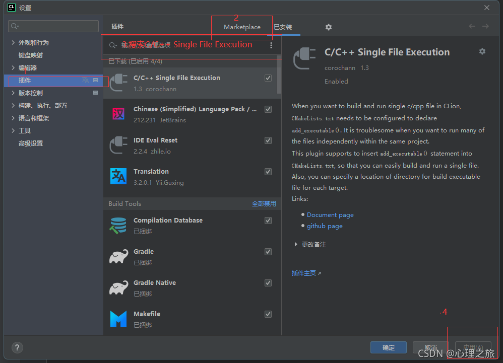 注意要在:要marktplace中搜索,并且要应用(有些插件要重启clion才能使用)