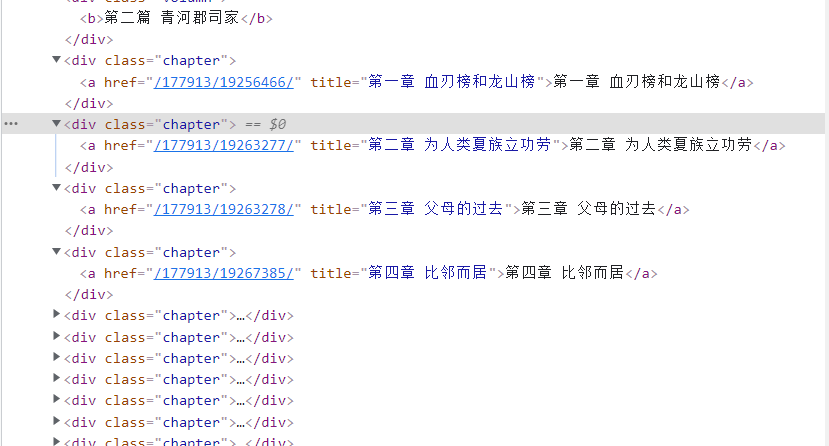 for chapter in soup.find_all(class_='chapter'):# 获取所有的a标记中章节