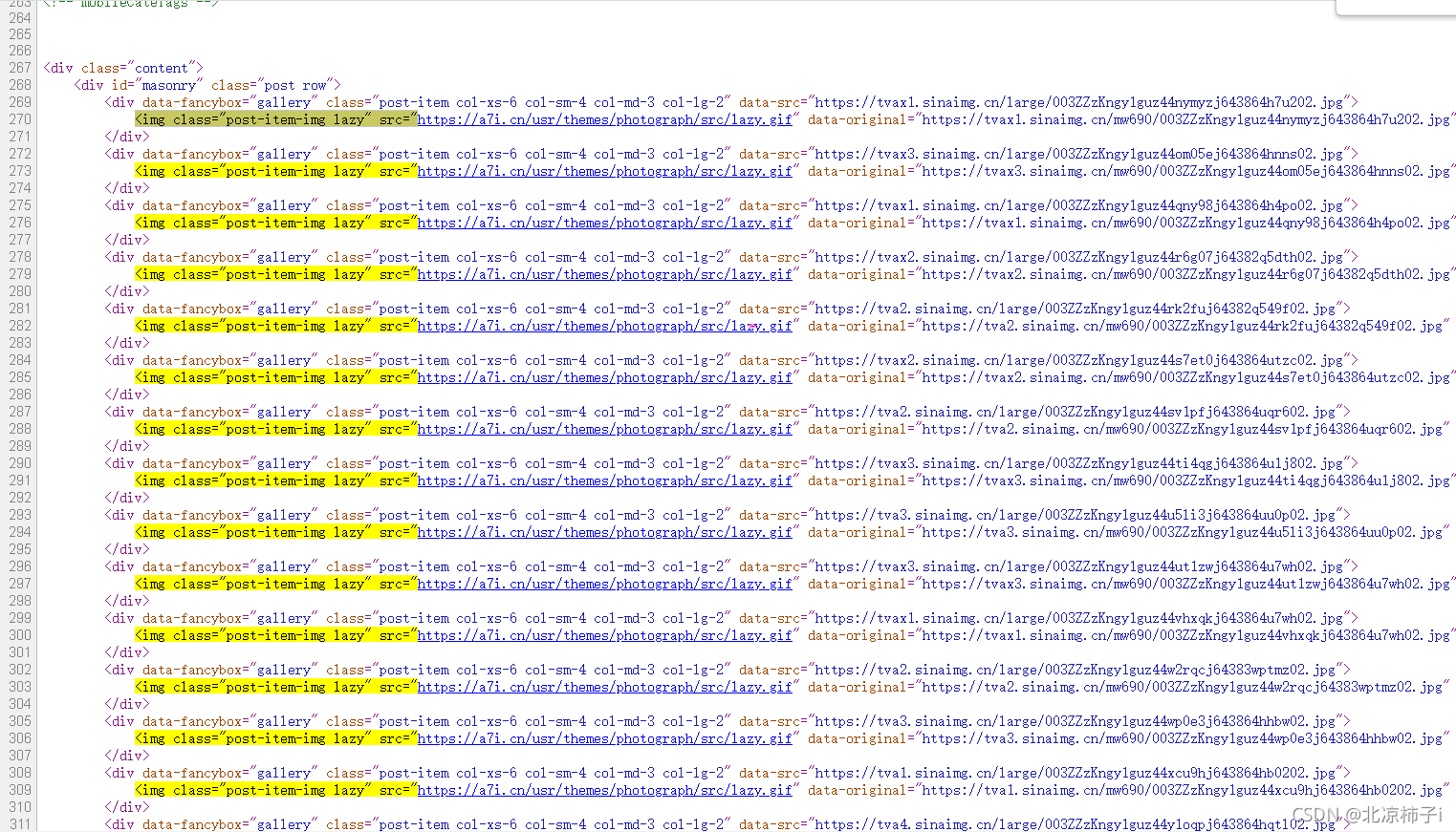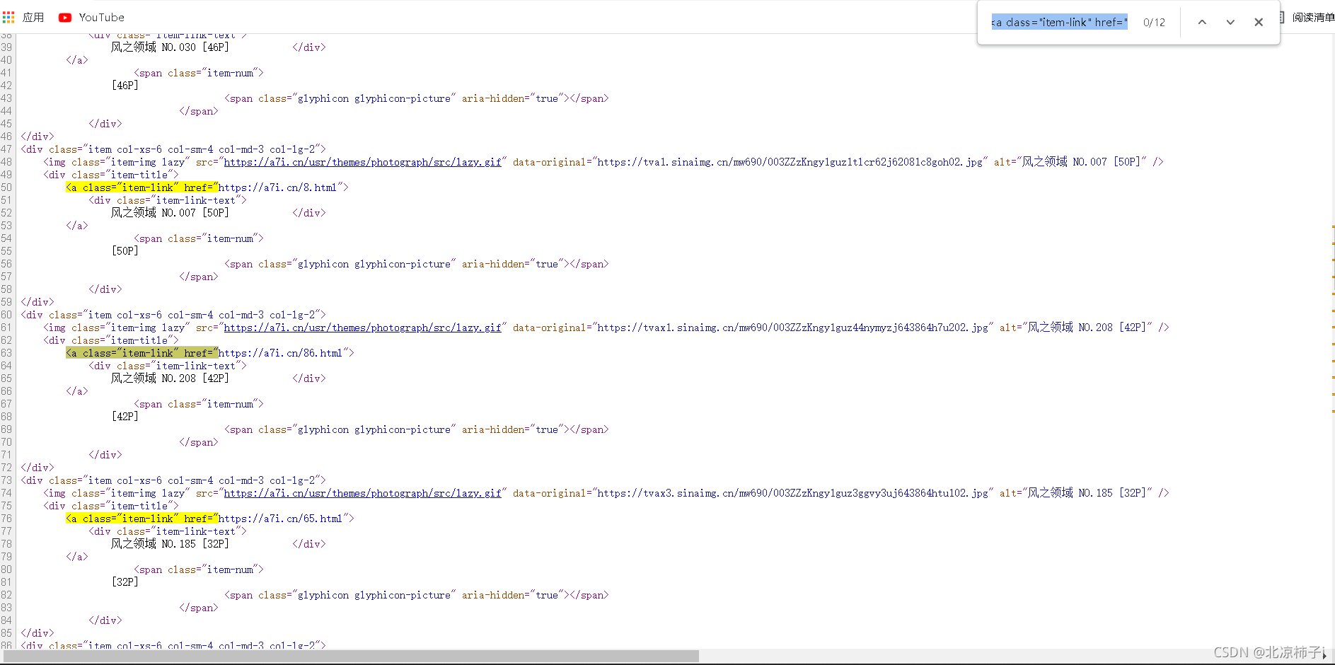 本次爬取的网址为:分类 风之领域 下的文章 - 阿七美图馆