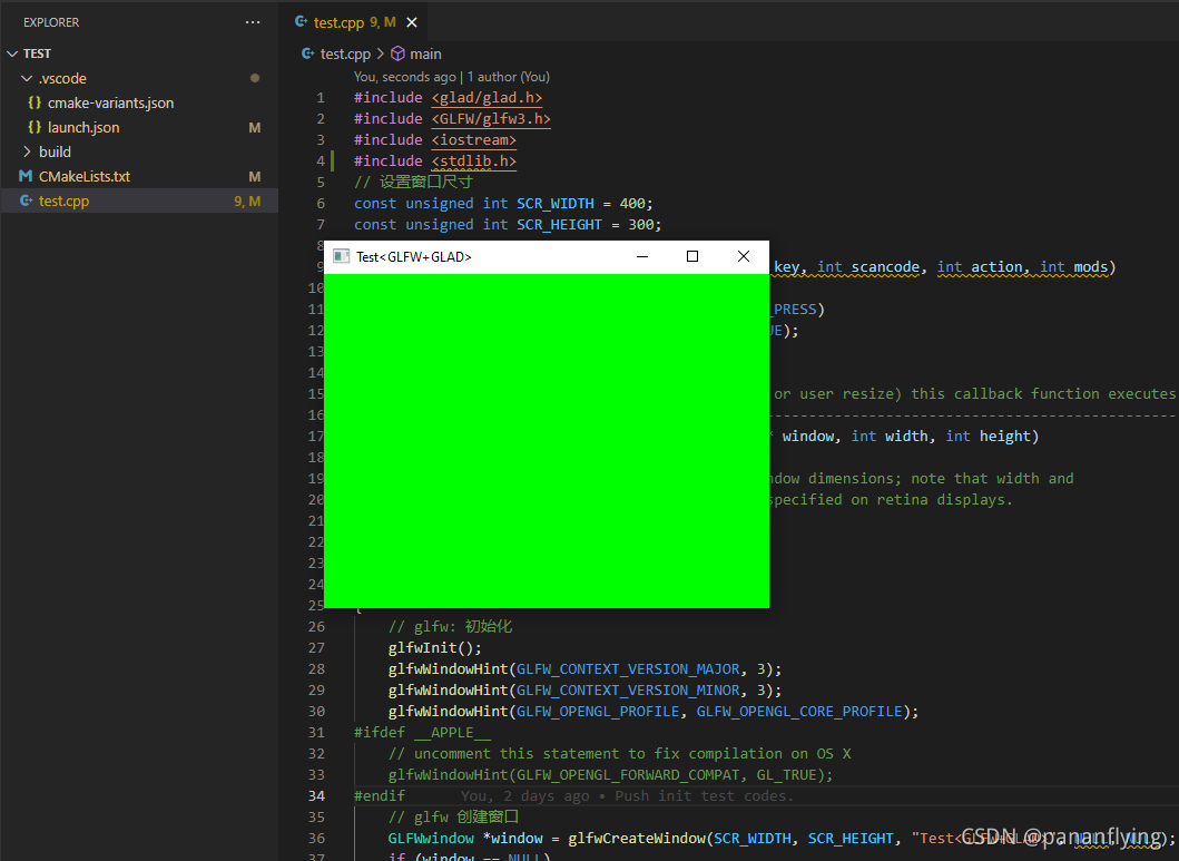 GLFWwindow *window = glfwCreateWindow(SCR_WIDTH, SCR_HEIGHT, "Test<GLFW+GLAD>", NULL, NULL);
