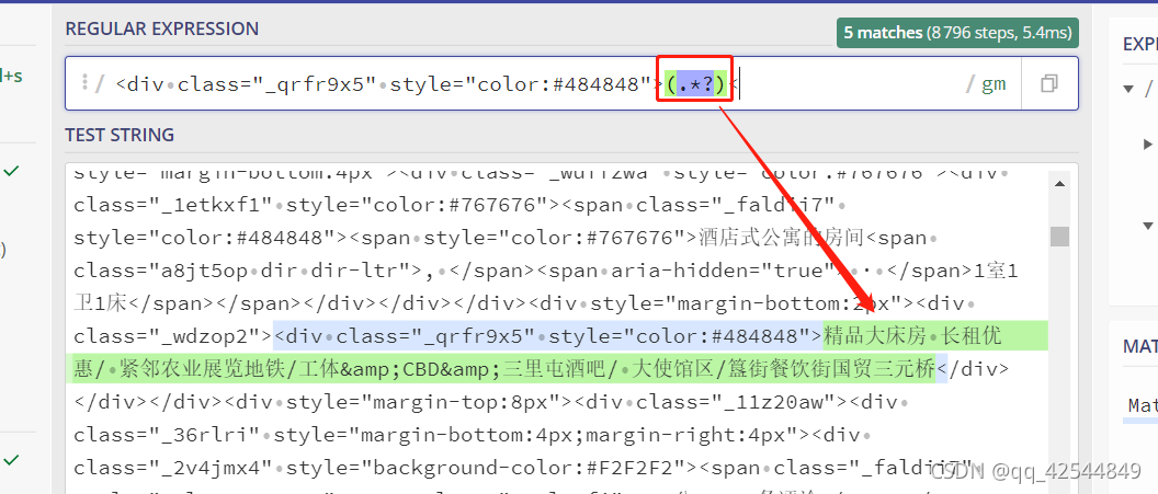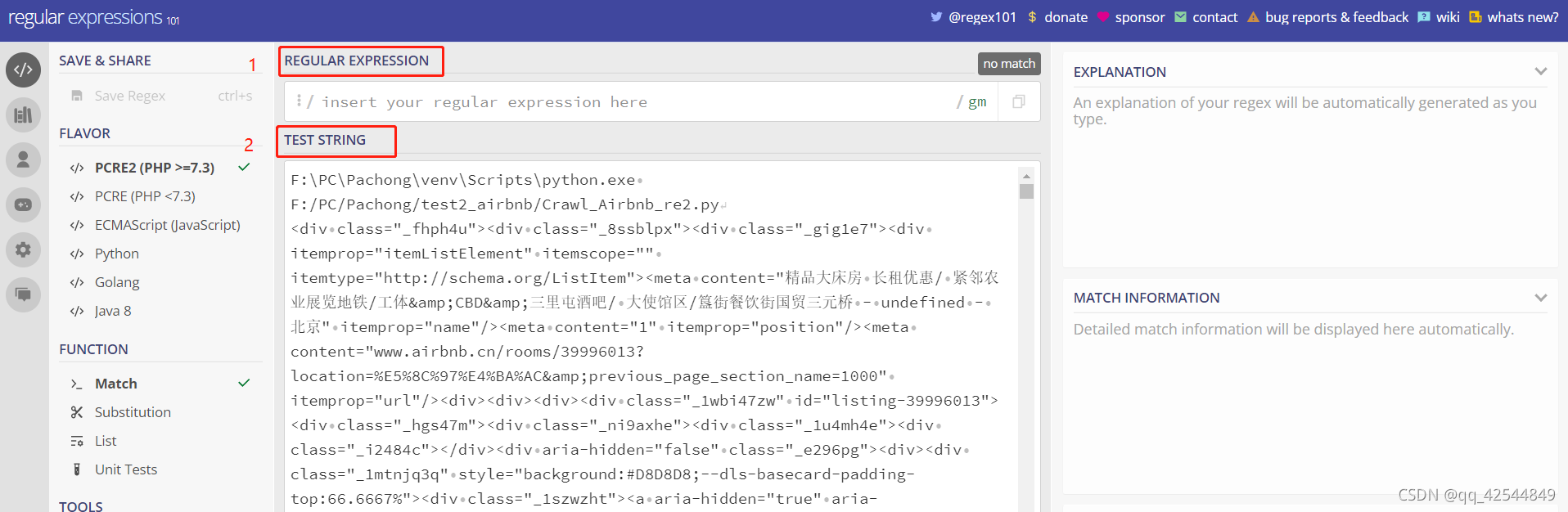 ①先输出网页信息,并复制、粘贴到这个网址:regex101: build, test, and debug regex? 的2里面。