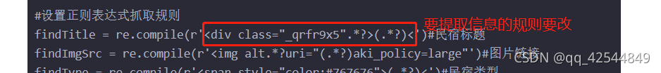 findTitle = re.compile(r'<div class="_qrfr9x5".*?>(.*?)<')#民宿标题