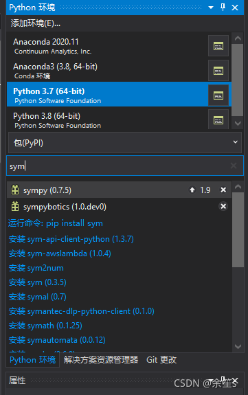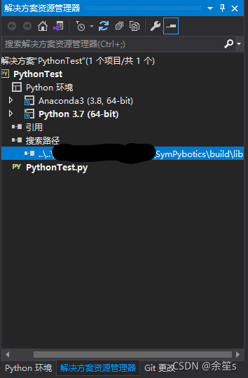 打开VS 2019,新建Python项目,复制SymPybotics提供的示例代码(README.md),这时可能会提示unresolved import 'sympybotics',虽然包列表里能看到已经成功安装,我也不清楚为什么会出这样的问题...