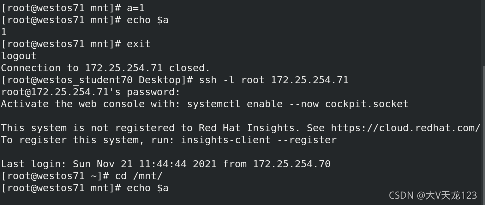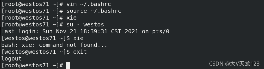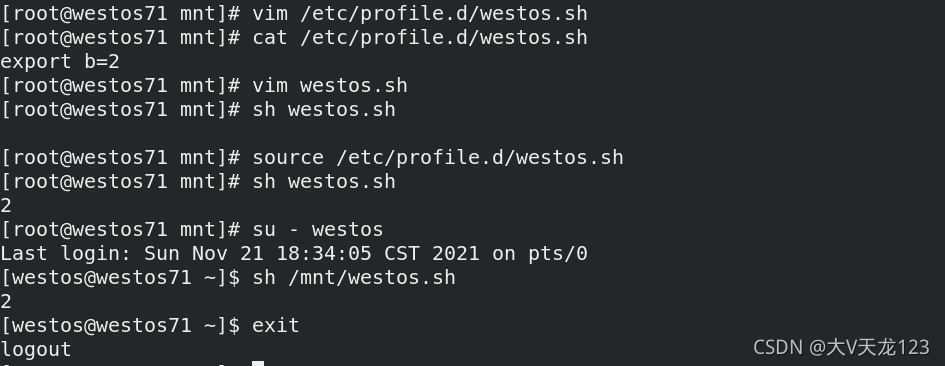 export a=1 在环境关闭后变量失效 #### 用户级别