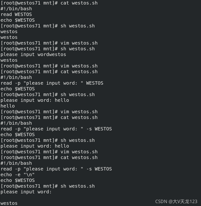 read? ?p? ?"please input word:" ##输出提示语 s ##隐藏输入内容 ?