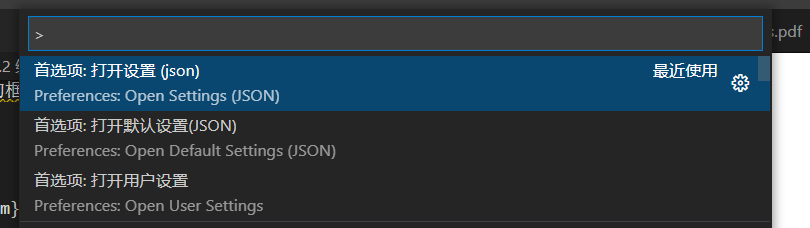 3、vscode中单击F1,输入json,选择“setting.json” (注意不要选成默认default的了)