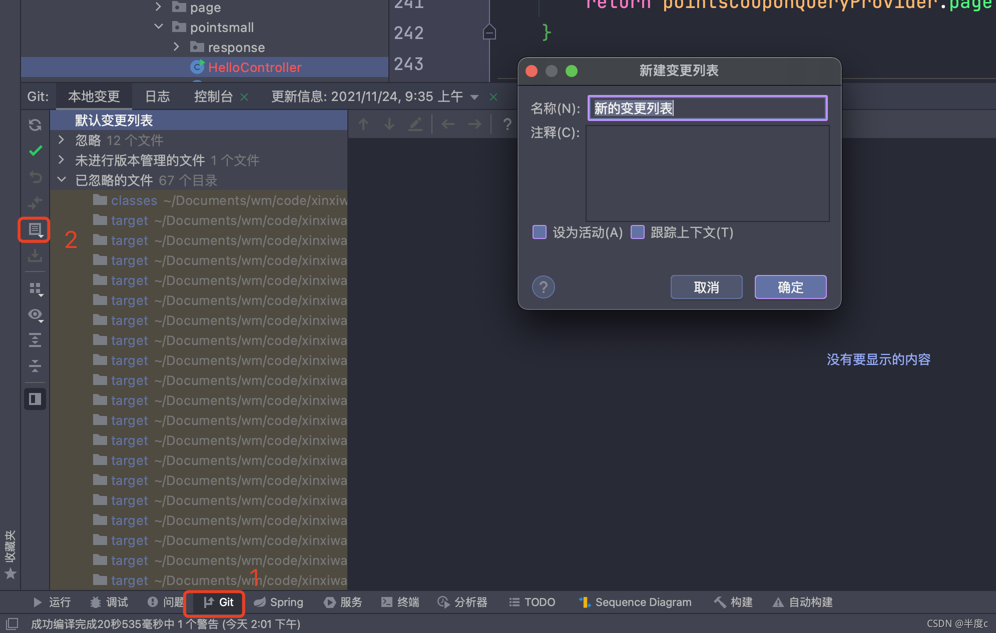创建一个changelist 首先创建一个changelist,为了好记,可以叫忽略的或者ignored, new changelist—-忽略的