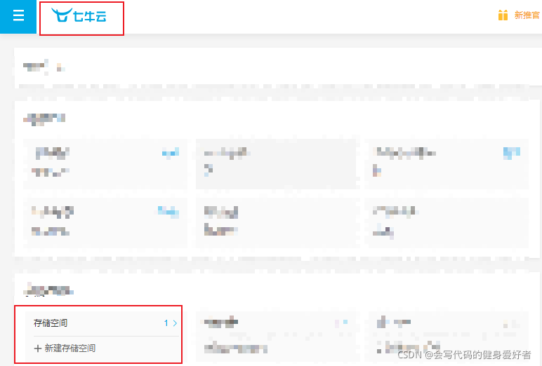 ?3.点击页面导航上的七牛云,然后点击下方的存储空间,新建一个新的存储空间