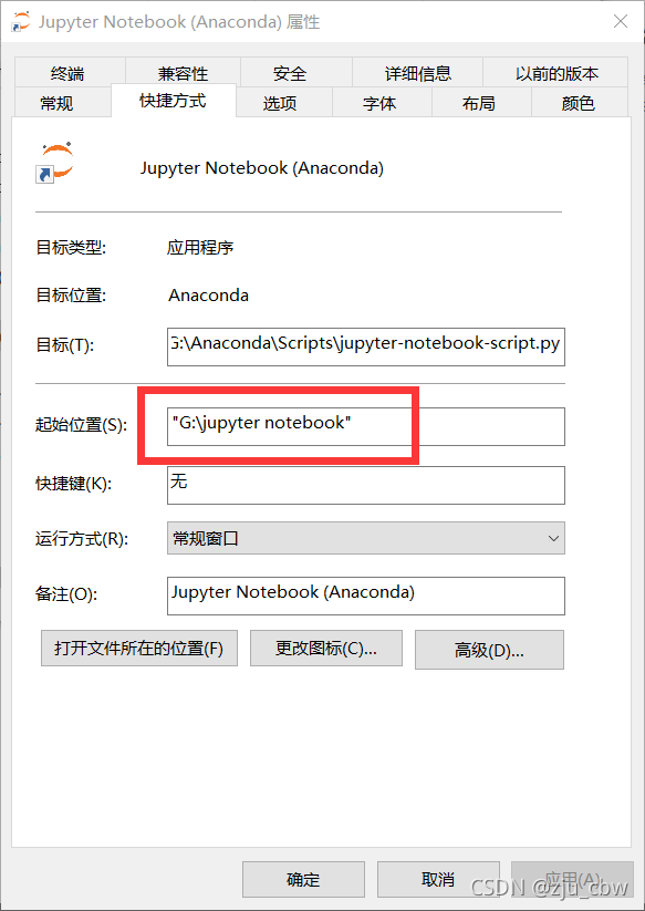 Jupyter Notebook 快捷方式,如果目标最后有%USERPROFILE% ,要删掉,这样点快捷方式也能以你设定的默认工作目录打开了。