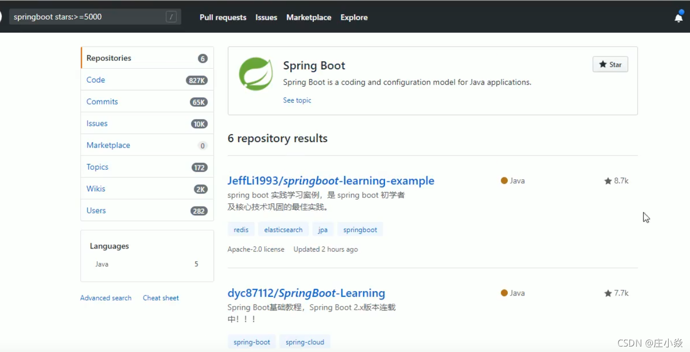 springboot stars:>=5000