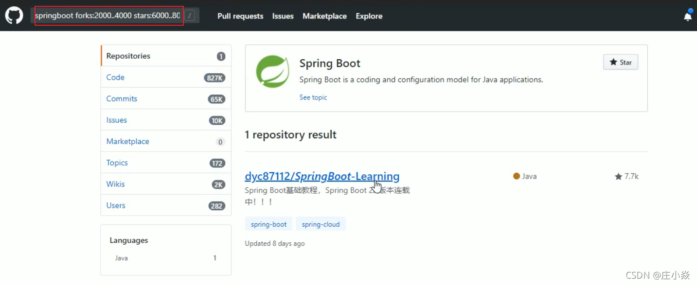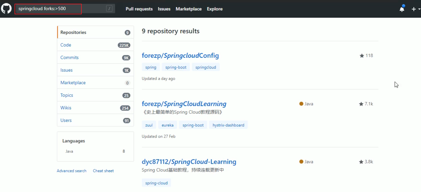 stars或fork数量关键词去查找