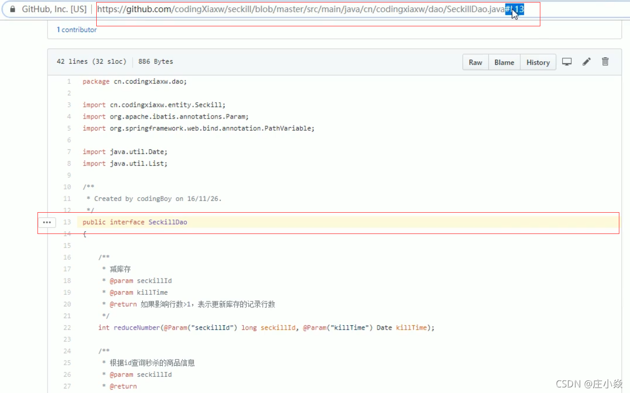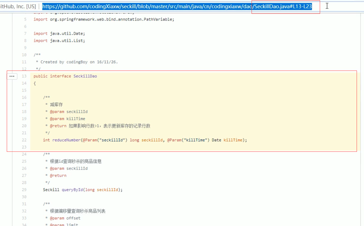 https://github.com/codingXiaxw/seckill/blob/master/src/main/java/cn/codingxiaxw/dao/SeckillDaojava#L13