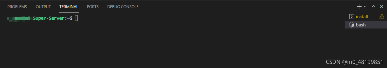 按照网上的教程,进行了vscode远程连接的配置,连接后能够打开远程目录,但是没有和教程一样出现terminal,并且install出现警告符,运行结果如下。