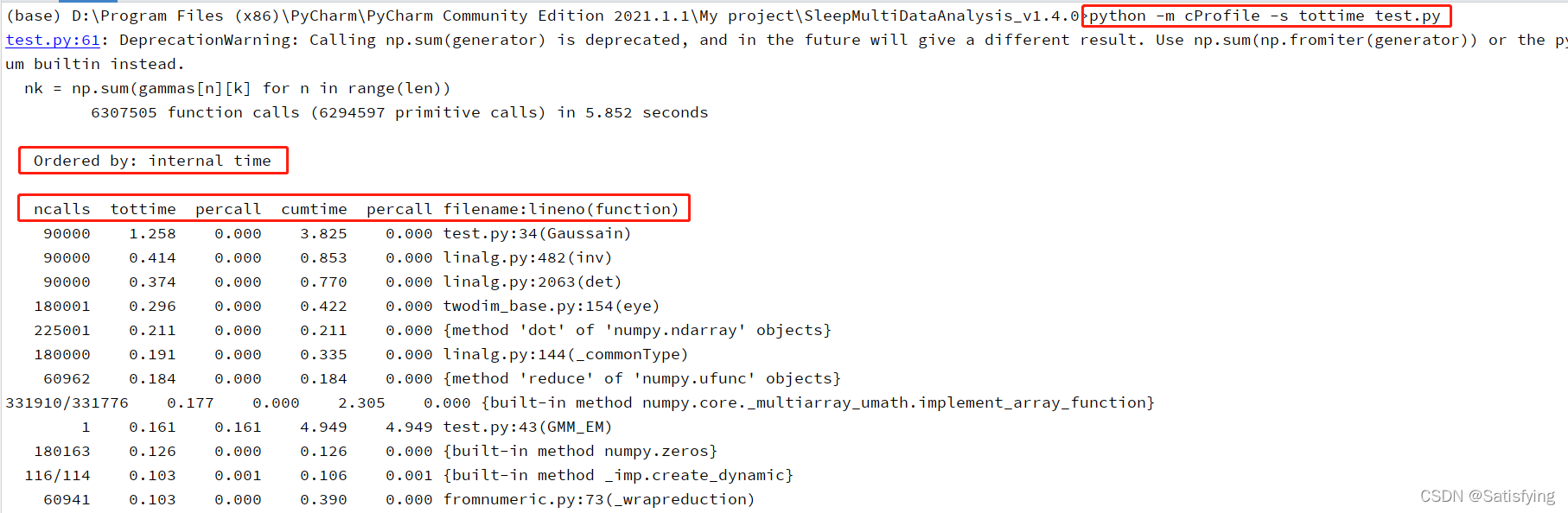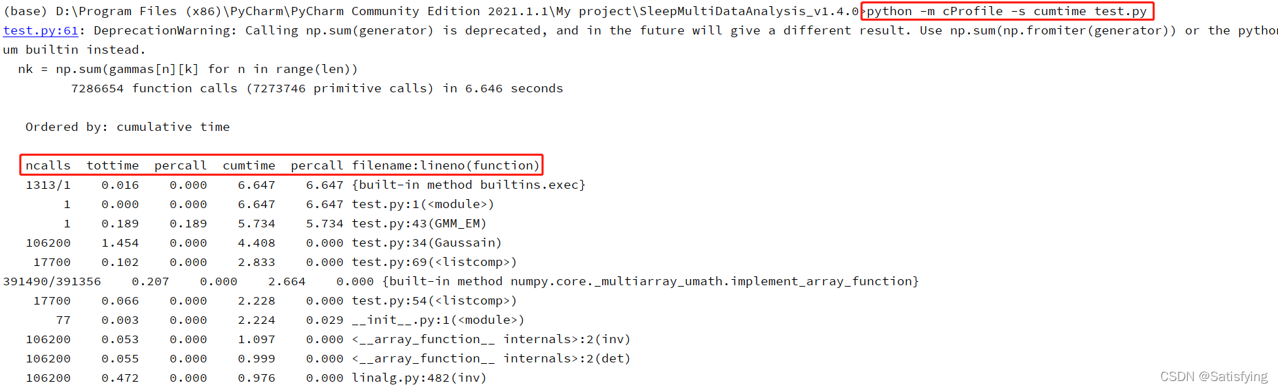 ? ? ? ? 有时候发现自己的代码运行得很慢,但又难以定位是哪里导致的代码性能差。此时,火焰图上场啦~Python 中的 cProfile 模块可以生成程序运行的火焰图,检测每个模块的运行效率,使用方法如下:(在命令行直接调用)