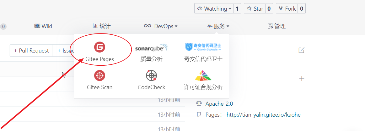如何把自己写的网页生成链接呢?让其他可以通过链接可以看到你的精彩网页呢? 首先按照上面的步骤,把代码上传到云端。注意要有index.html命名的网页才可。可以把自己的网页改下名。 . 在自己建的仓库中找到服务  点红圆圈圈住的。 要是新用户的话会让你实名,提交身份证的图片。提交申请后在一天以内就会通过。