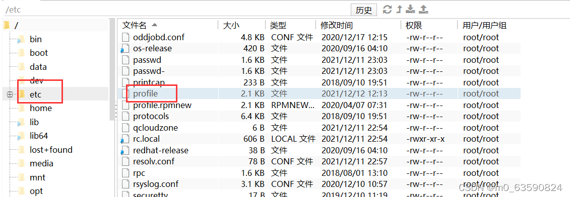 3、打开/etc/profile这个文件(FinalShell连接工具里面打开)