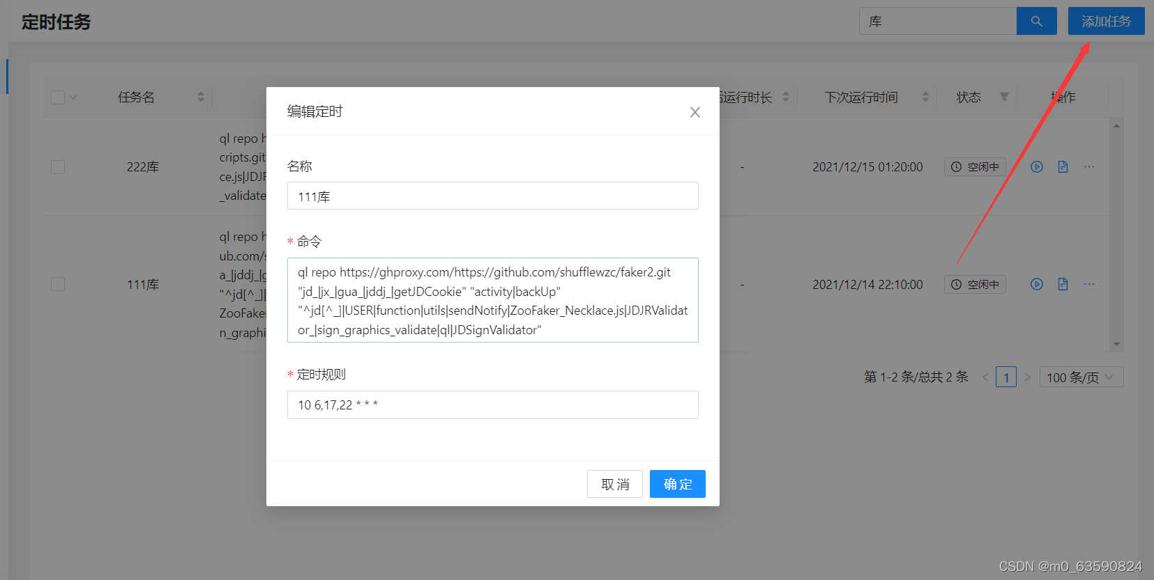 复制拉库命令,参考下图添加任务拉库,添加完手动运行一下即可。