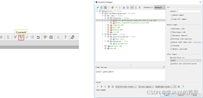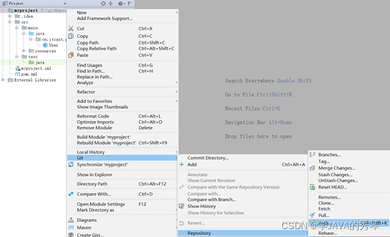 ? 将项目添加至Git管理后,可以从IDEA的工具栏上看到Git操作的按钮