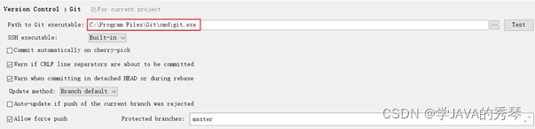 选择File→Settings打开设置窗口,找到Version Control下的git选项: