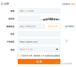要想使用码云的相关服务,需要注册账号(地址: 注册 - Gitee.com )