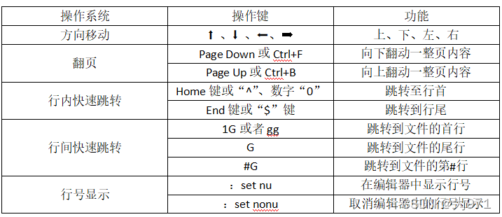 操作类 | 操作键 | 功能 | 删除 | x或Del | 删除光标处的单个字符 | dd | 删除当前光标所在行 | #dd | 删除从光标所在行开始的#行内容 | d^ | 删除当前光标之前到行首的所有字符 | d$ | 删除当前光标处到行尾的所有字符 | 复制 | yy | 复制当前行整行的内容到剪贴板 | #yy | 复制从光标所在行开始的#行内容 | 粘贴 | p | 将缓冲区中的内容粘贴到光标位置处之后 | P | 粘贴到光标位置处之前 |