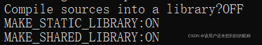 ????????当USE_LIBRARY为ON时,MAKE_STATIC_LIBRARY为OFF,?MAKE_SHARED_LIBRARY 为ON。