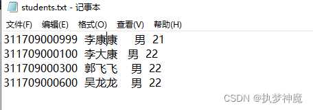实现了学生信息的增、删、改、查、从文件读入、写入文件