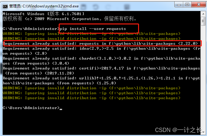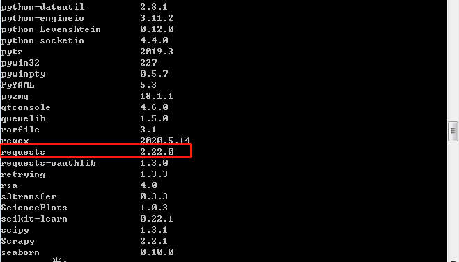 ??具体执行结果如下:  ??这是我已经安装黄成功的页面。大家安装成功后,在黑屏终端输入以下命令即可查看自己requests的详细版本信息: