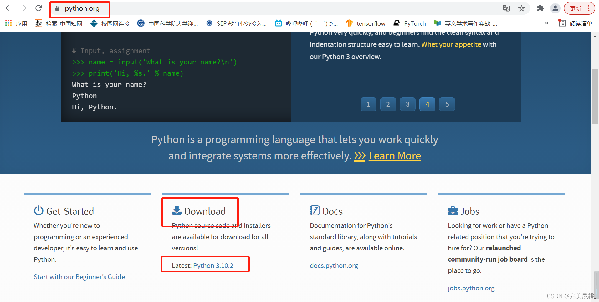 ? ? 1)访问python官网:https://www.python.org/,现在最新的python版本为3.10.2,但为了稳定性,以python3.9为例,点击下载: