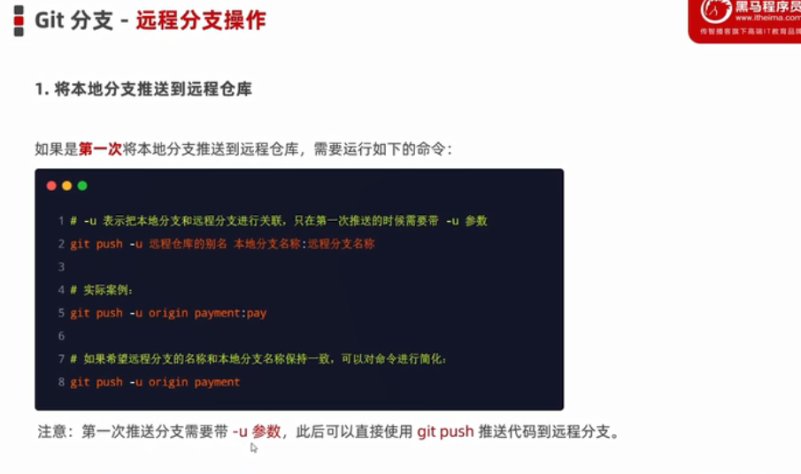 1、将本地分支推送到远程仓库