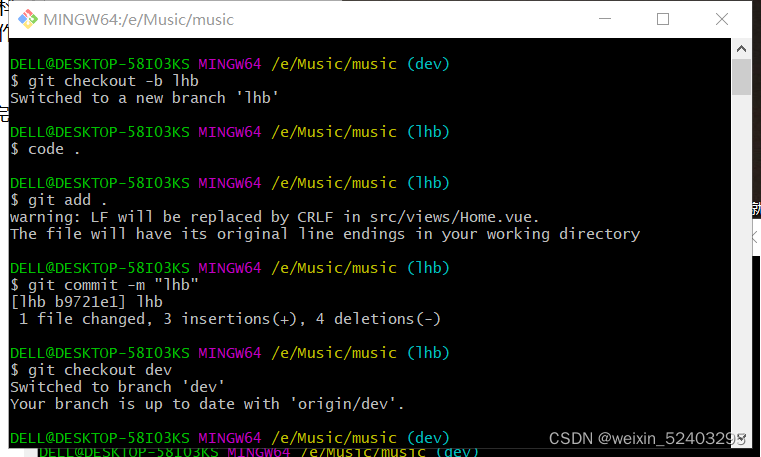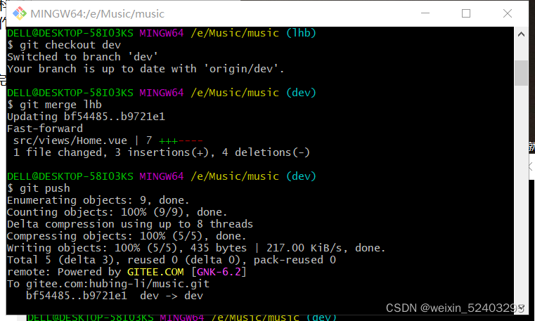 上传到dev: git add . git commit -m "" git checkout dev git merge lhb git pull(有问题自己百度,注意和队友发生冲突) git push? ?完事  ? ? ? ? -