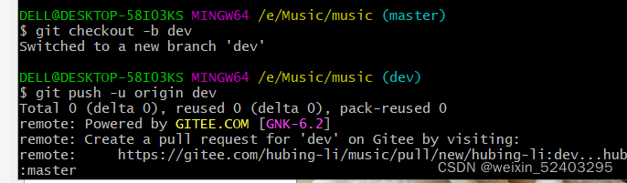 补充: 想自己分支的所有代码和dev一样可以在自己的分支下git merge dev 每次自己代码有更新需要重复 7 -