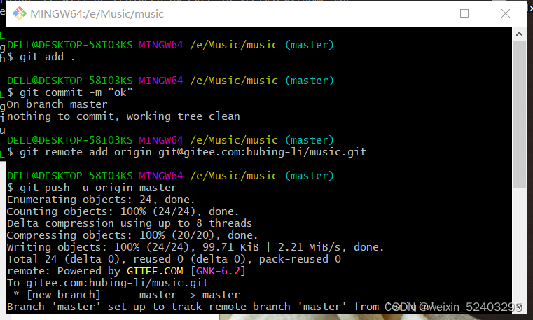 本地项目(git bush here)直接推到远程(新建的远程仓库有上传代码) ps:如果创建的项目没有自己的远程仓库需要手动先提交一下(git add . git commit -m "") -