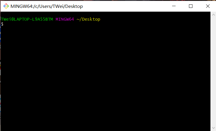 2、在桌面右键可以看到Git bash选项,或者去安装目录下找到Git bash,双击打开,界面如下:  3、输入注册github账户时所使用的用户名和邮箱(忘记了可以去github上获取):