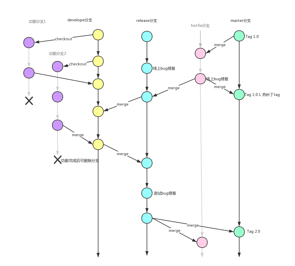 ? ? 功能分支属于临时性分支,个别合并完就会删除。它是为了开发某种特定功能,从master分支下面分进去;开发实现后,再并入Develop分支。