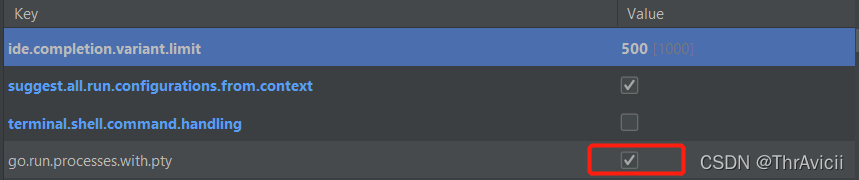 - 取消?go.run.processes.with.pty 属性的勾选,点击 close 即可