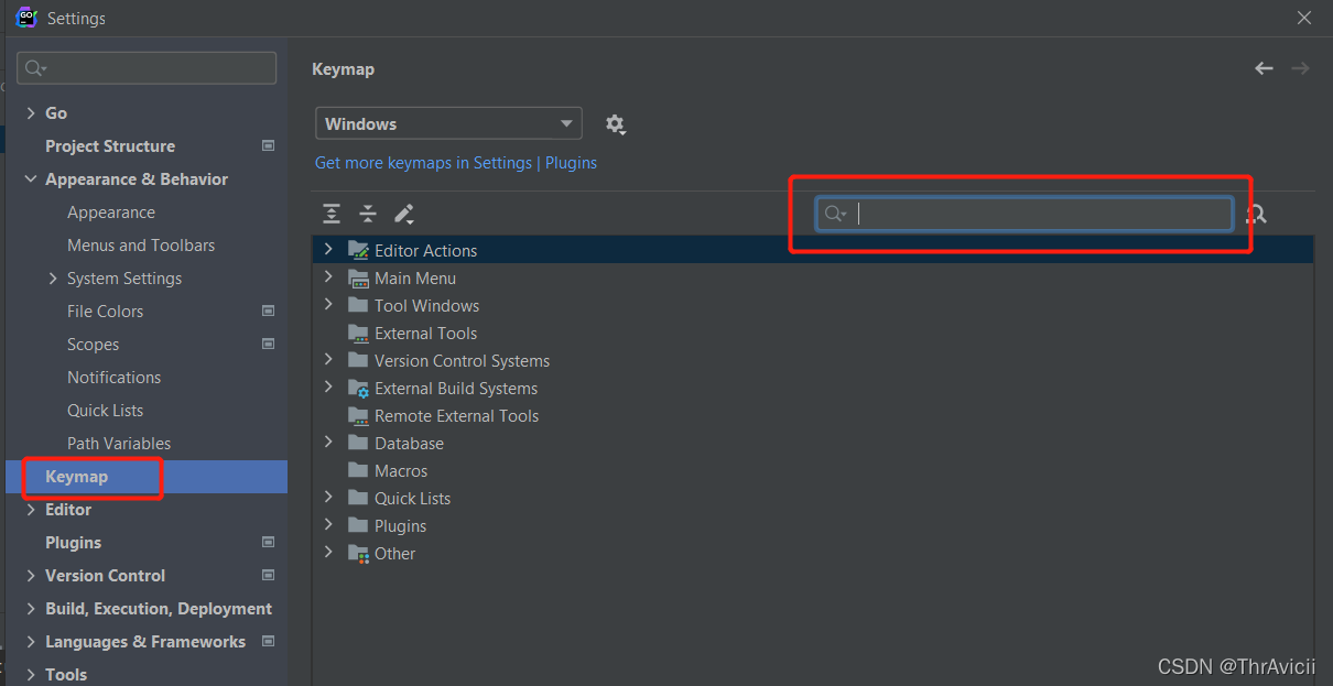- ?选择 Keymap,可以根据个人习惯进行快捷键设置,右上角支持搜索