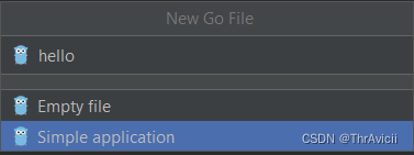 - ?选择 Empty file 即为一个仅显示 package 名称的空文件,选择下方 Simple Application 不仅显示 package 名称,而且会自动创建一个主函数