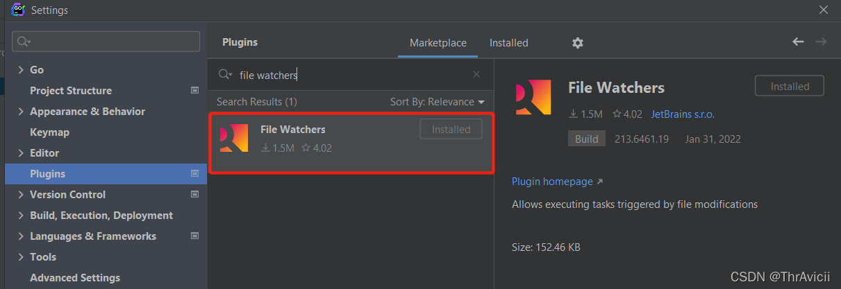 - 如果 Tools 下展开没有 File Watchers,可点击 Plugins 插件中进行安装