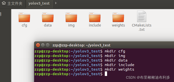下图中,可以看到存在darknet、libdarknet.so两个文件(网上有很多darknet资源)?2.2 在终端创建一个新文件夹yolov3_test