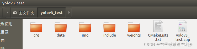 接下来,在yolov3_test文件夹内新建cfg、img、data、include、weights文件夹,结果如下图所示。?