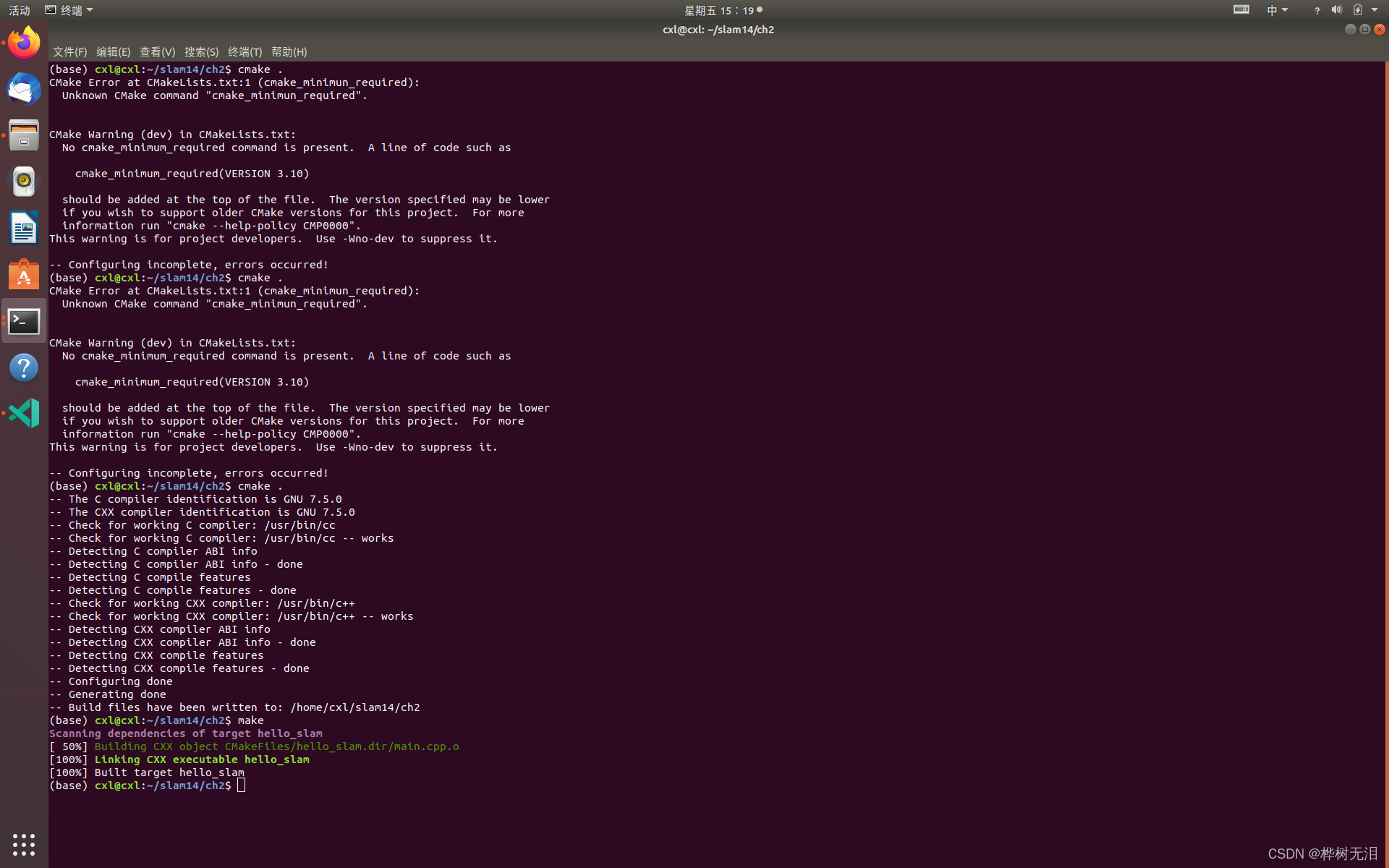 g++ main.cpp -o hello_slam //将main源文件编译成hello_slam可执行文件